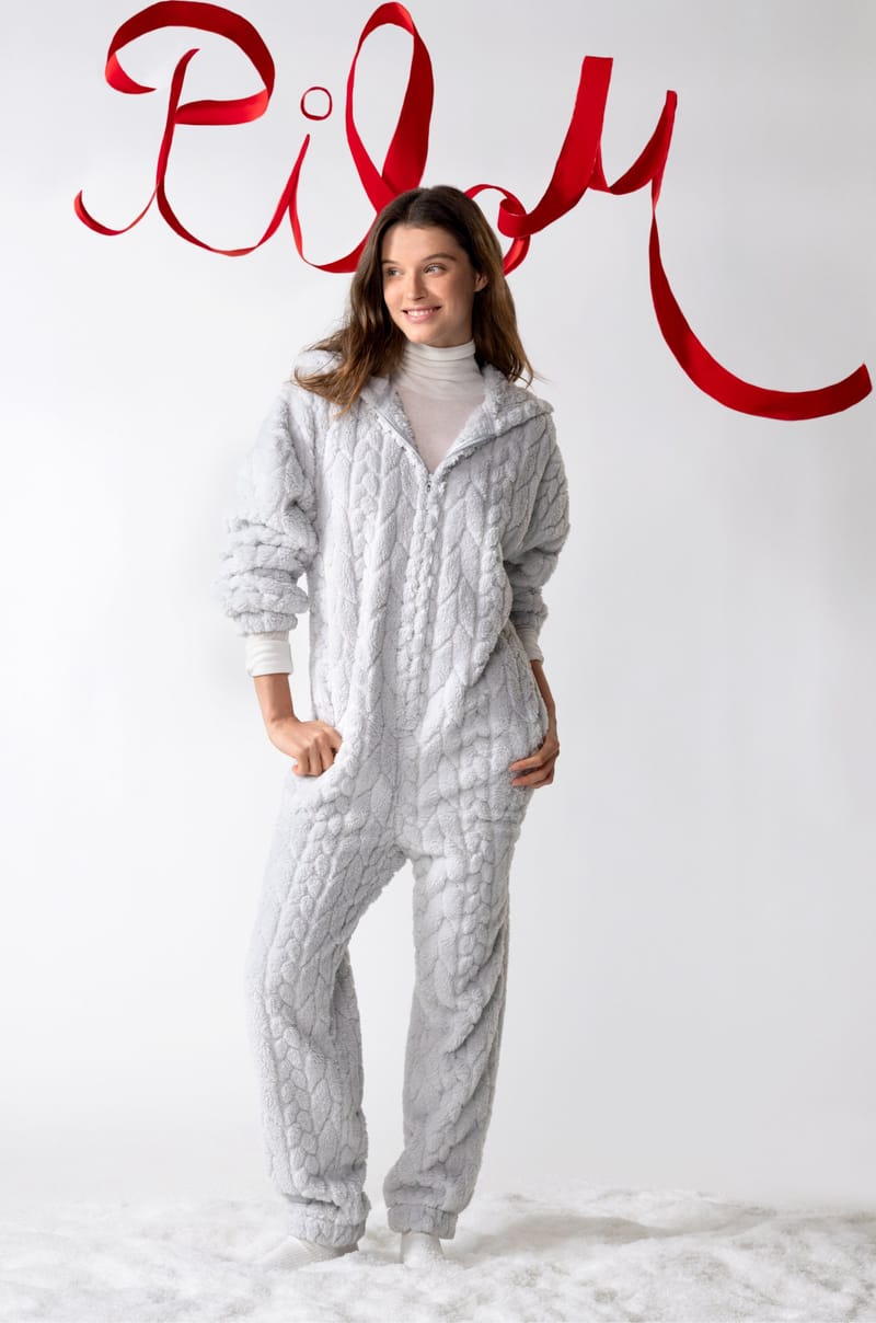 Ultra měkký a pohodlný, tento overal je vyroben z umělé kožešiny. Ideální pro udržení tepla, je zvýrazněn pletenkovým ef...