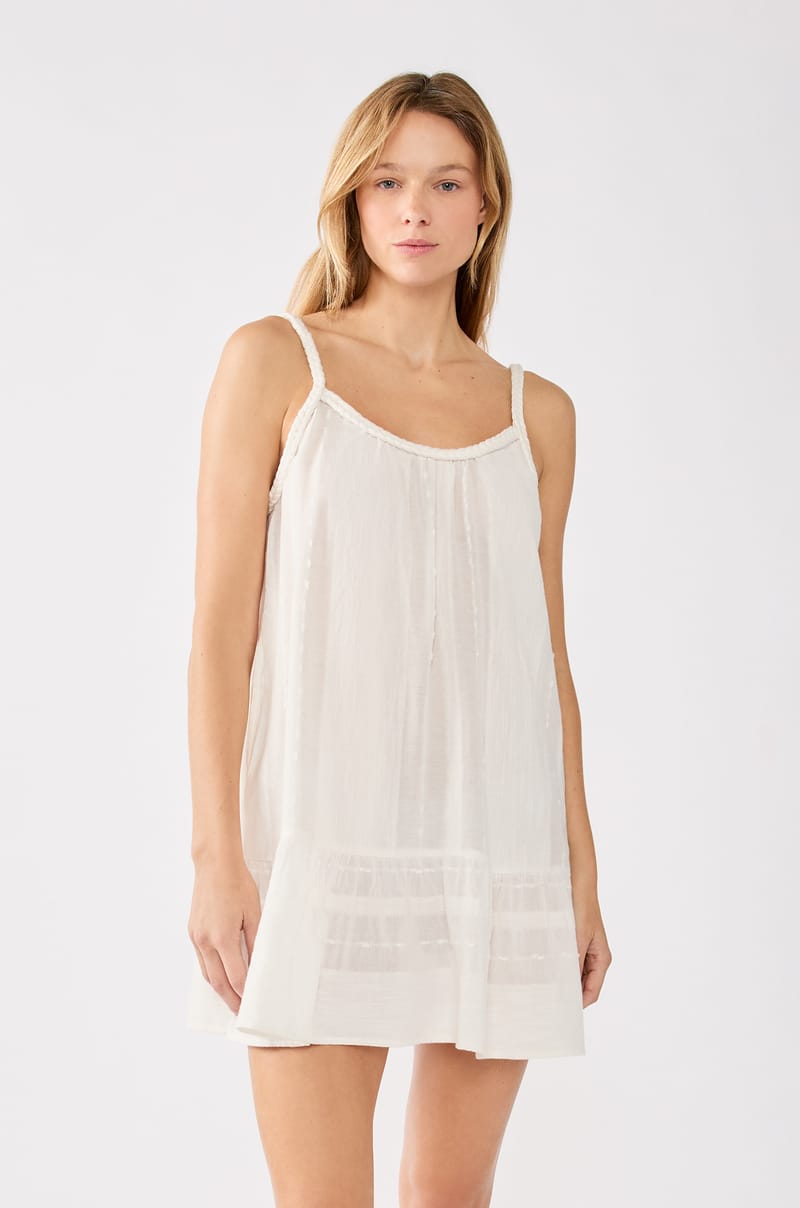 Pro cestu na pláž jsou šaty nezbytným letním kouskem, který si oblečete přes plavky. S tenkými ramínky a pleteným kulatým výstřihem se silueta jemně odhaluje.