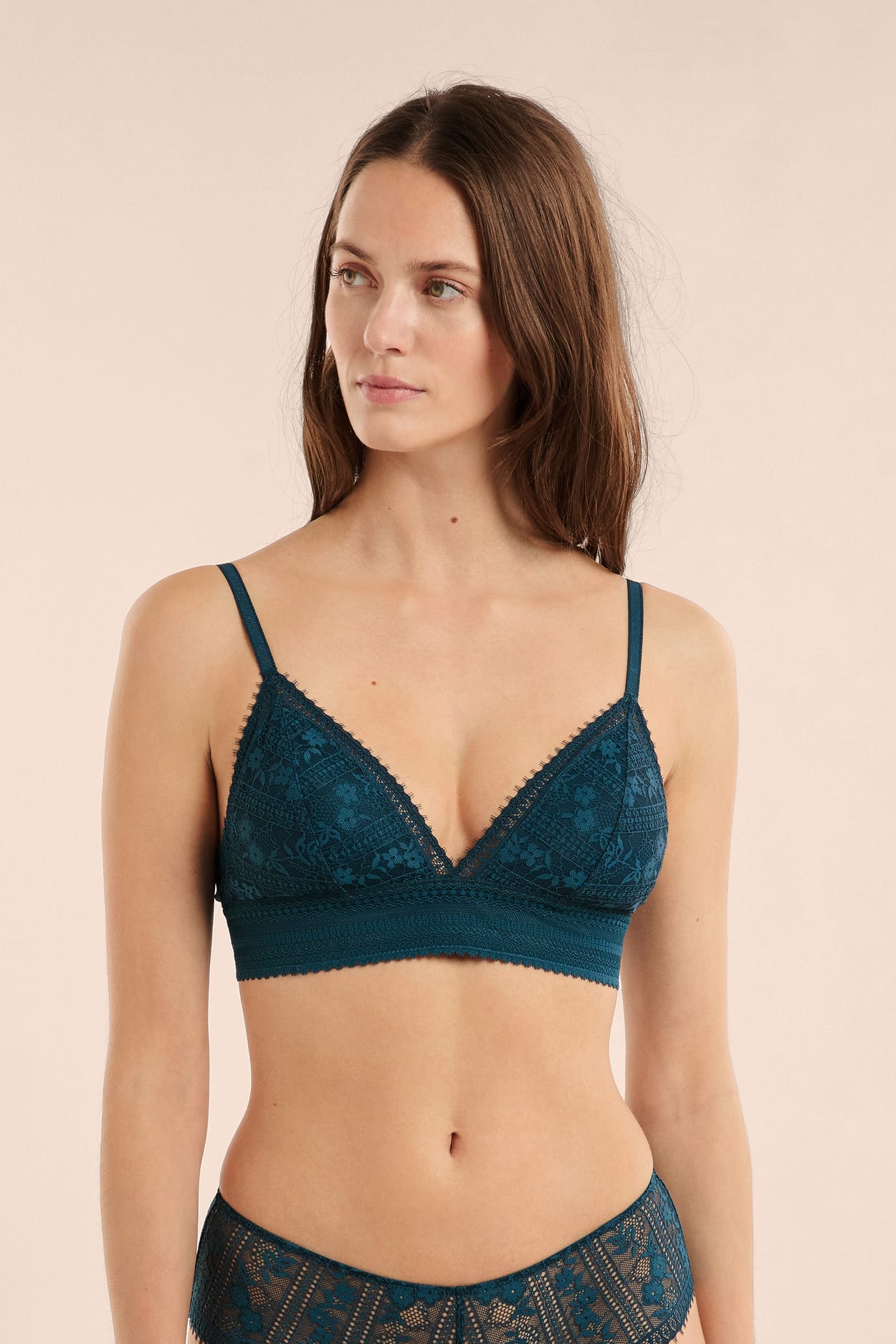 Nové každodenní spodní prádlo, které je zároveň sexy a pohodlné. Krajka s efektem eyelash této podprsenky kombinuje květinové vzory na zádech a grafické pruhy vpředu. Její střih bez kostice přirozeně zvýrazňuje poprsí, zatímco dvojitá tenká ramínka vpředu dodávají nádech elegance.