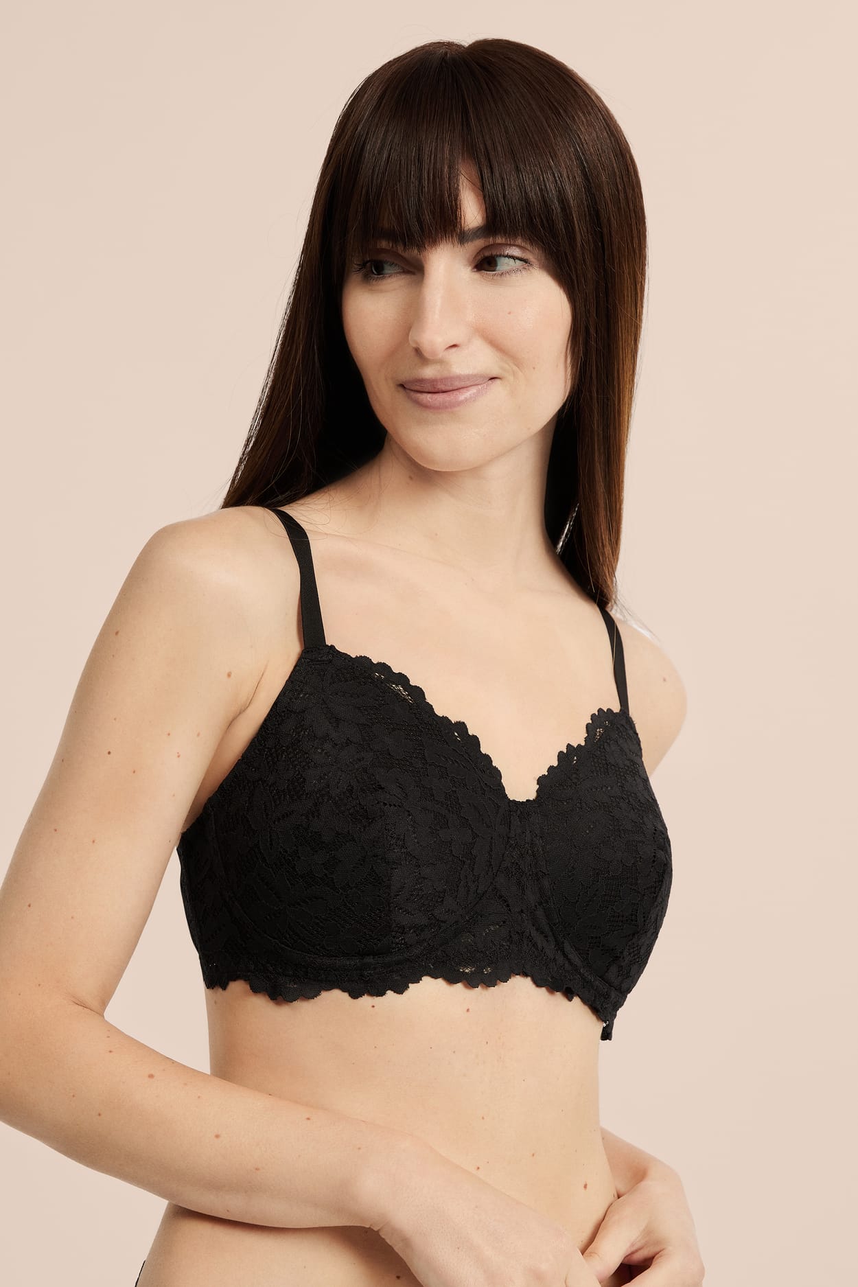 Bez kostic a vybavená oboustrannými kapsami se naše podprsenka s měkkými košíčky přizpůsobí všem typům protéz. Navržená tak, aby poskytovala absolutní pohodlí, kombinuje styl se svou novou květinovou krajkou.