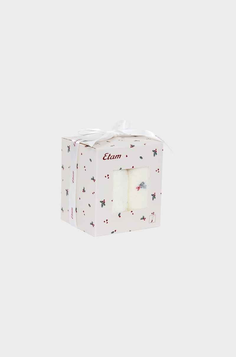 Ideální pro to, abyste zůstali v teple, vyberte si tento set ponožek k darování nebo pro sebe. Obsahuje jeden pár jednobarevný a jeden pár s potiskem cesmíny.